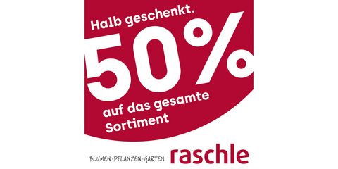 Ab sofort erhalten Sie 50 % Rabatt auf das ganze Sortiment der Gärtnerei Raschle!